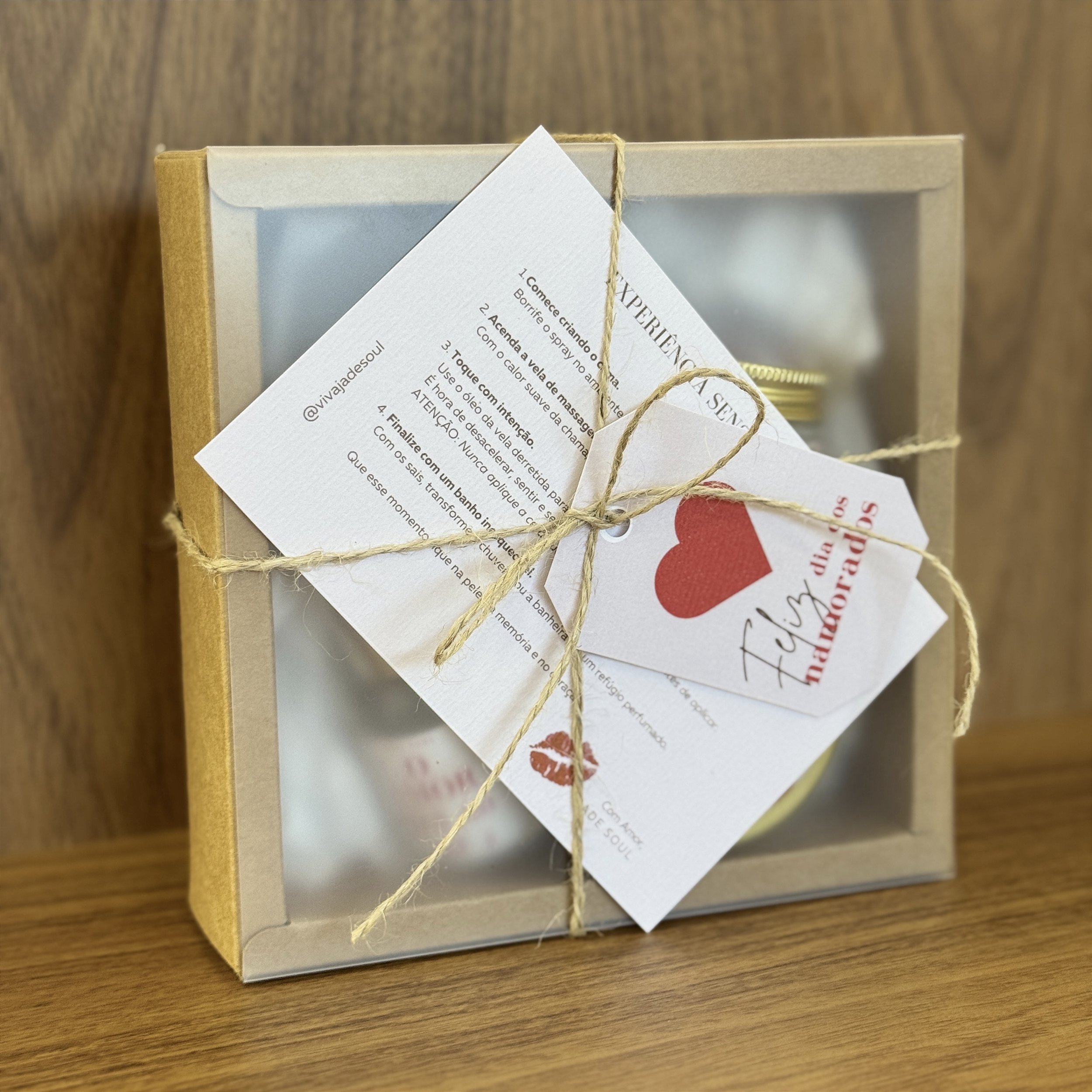 Este kit foi pensado para casais que desejam desacelerar, se reconectar e despertar os sentidos. Cada item convida ao toque, ao cheiro e à presença - transformando o agora em um ritual de afeto.