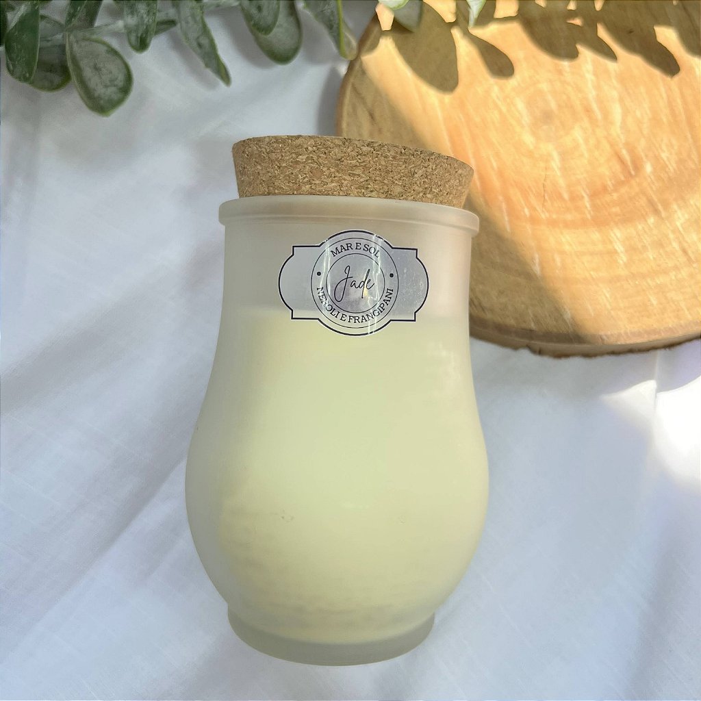 Vela perfumada em frasco em formato de Lamparina fosco e rolha de cortiça.